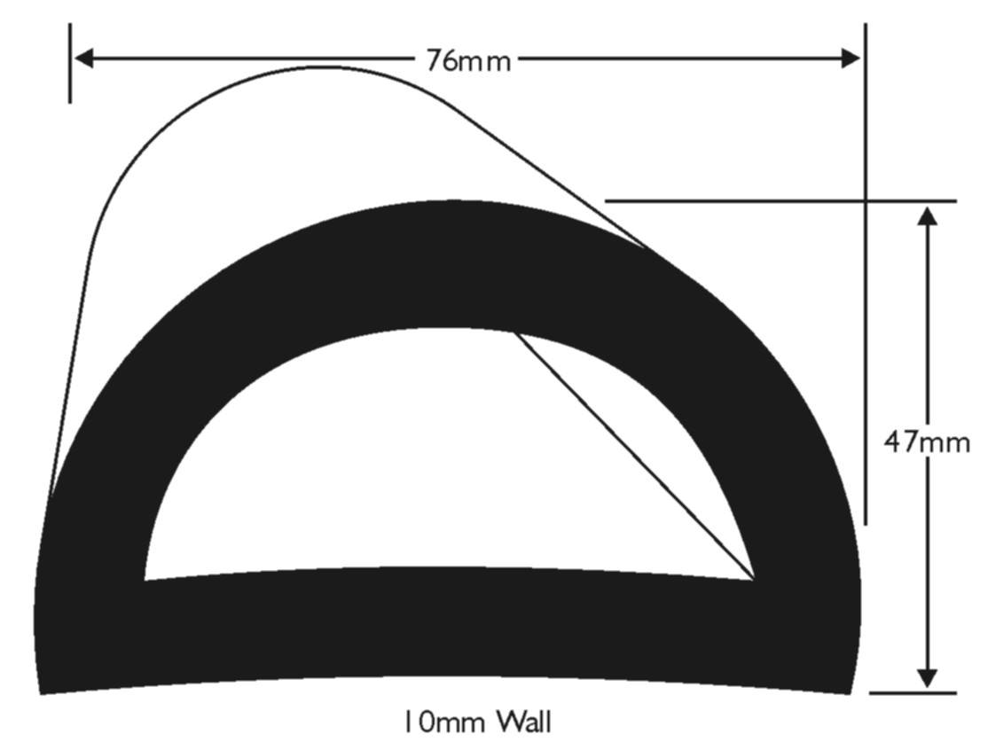 Flexibele PVC D-stootrand voor op randen van 76 millimeter.