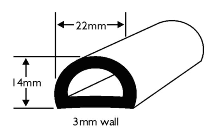 Flexibele PVC D-stootrand voor op randen van 22 millimeter.