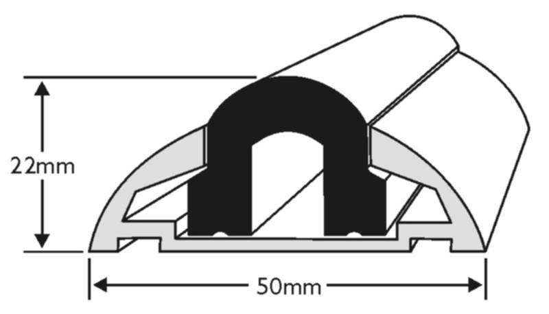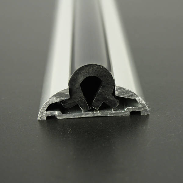 Het profiel bestaat uit twee delen, de aluminium body die op de scheepsromp gemonteerd wordt, en een PVC insert die hier ingedrukt word.