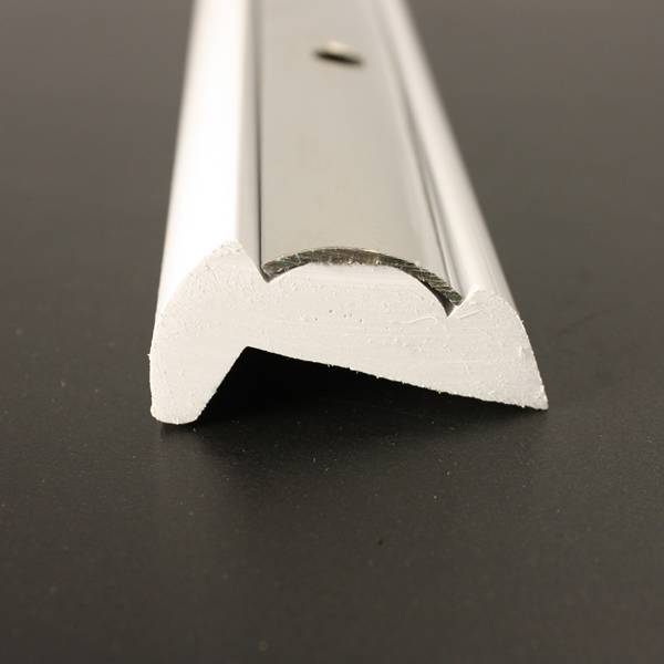 De PVC 1881R is een hard PVC profiel met lip en een basis (inclusief lip) van 50mm. Het rvs halfronde insert is apart te bestellen. Kleur wit. |