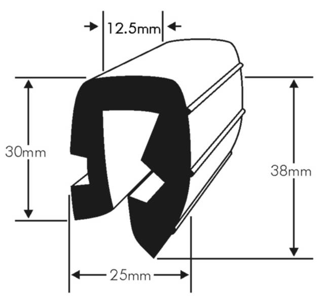 Het PVC U 286 profiel heeft een uitsparing aan de binnenzijde en aan de onderkant van de onderlip.