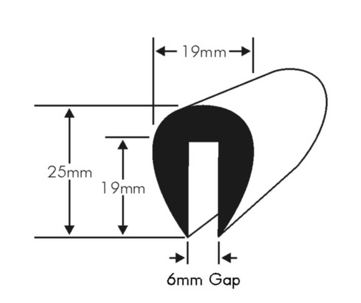 Een flexibel u-profiel voor over randen van 6 millimeter dik.